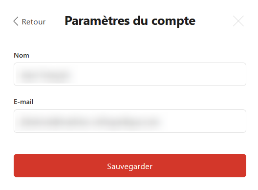 Vous pourrez alors mettre à jour votre nom et votre adresse e-mail. Une fois les modifications effectuées, cliquez sur « Sauvegarder ».