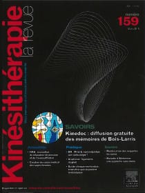 Kinésithérapie la revue est née de la fusion des Cahiers de Kinésithérapie et des Annales de Kinésithérapie en 2001. Les rédacteurs en chef, Michel Gedda et Pascal Gouilly, sont secondés par Véronique Dubard. À raison de 12 numéros par an, cette revue référente dans le domaine de la physiothérapie allie des actualités, de la pratique, des articles scientifiques et des mises au point. Rendons à César ce qui lui appartient et saluons les fondateurs des Cahiers de Kinésithérapie et des Annales, à savoir Joël Barthe et Éric Viel.